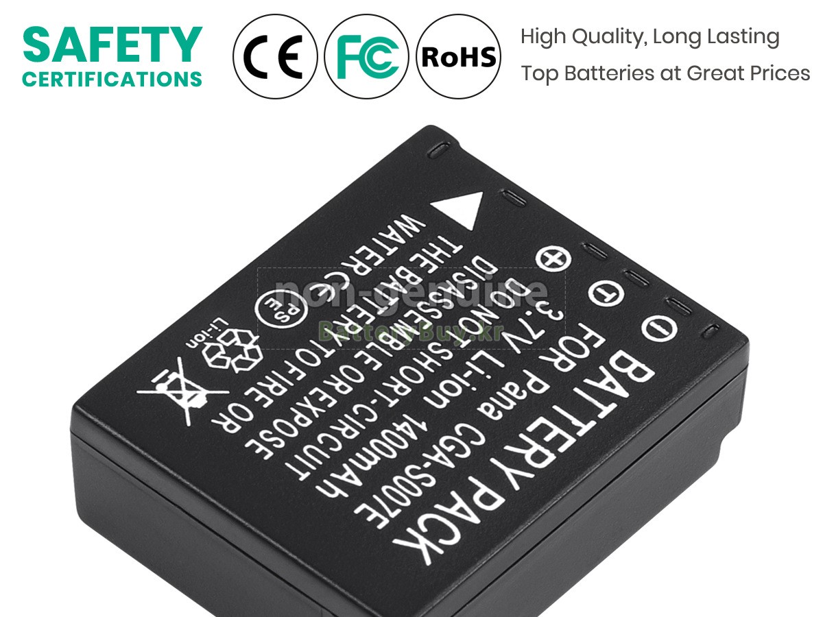 본 새로운 Panasonic DMW-BCD10 대체용 배터리는 삼성, 파나소닉과 LG 등 오리지날 공장의 고품질 리튬이온셀을 적용하였고, 배터리의 케이스는 내용성 ABS플라스틱을 사용한 제품입니다. BatteryBuy.kr는 제품 안전성에 대해 요구가 엄격한 바 해당 Panasonic DMW-BCD10 배터리 제품은 전부KC, CE, UL, ROHS, ISO 9001/9002 등 일련의 안전인증을 통과하여 국제표준에 부합되며 오리지날사의 규격과 100%로 호환가능하며 오리지널 DMW-BCD10 배터리와 완전 매칭 심지어 초과 가능한 성능을 자랑하고 있습니다. 해당 Panasonic DMW-BCD10 배터리의 충/방전 주기는 600회좌우인 바 최적의 배터리 라이프를 선사하고 있습니다.