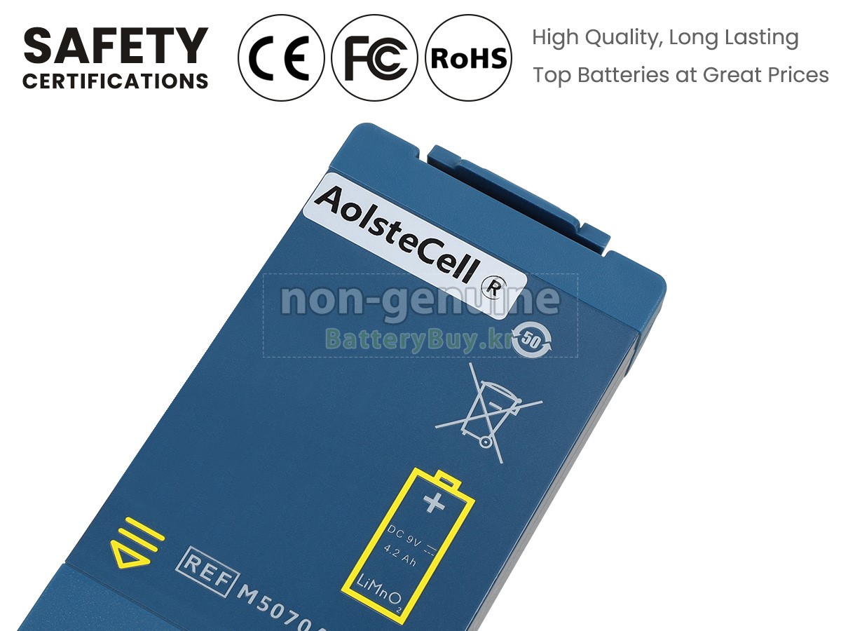 본 새로운 Philips HEARTSTART ONSITE AED M5068A 대체용 배터리는 삼성, 파나소닉과 LG 등 오리지날 공장의 고품질 리튬이온셀을 적용하였고, 배터리의 케이스는 내용성 ABS플라스틱을 사용한 제품입니다. BatteryBuy.kr는 제품 안전성에 대해 요구가 엄격한 바 해당 Philips HEARTSTART ONSITE AED M5068A 배터리 제품은 전부KC, CE, UL, ROHS, ISO 9001/9002 등 일련의 안전인증을 통과하여 국제표준에 부합되며 오리지날사의 규격과 100%로 호환가능하며 오리지널 HEARTSTART ONSITE AED M5068A 배터리와 완전 매칭 심지어 초과 가능한 성능을 자랑하고 있습니다. 해당 Philips HEARTSTART ONSITE AED M5068A 배터리의 충/방전 주기는 600회좌우인 바 최적의 배터리 라이프를 선사하고 있습니다.