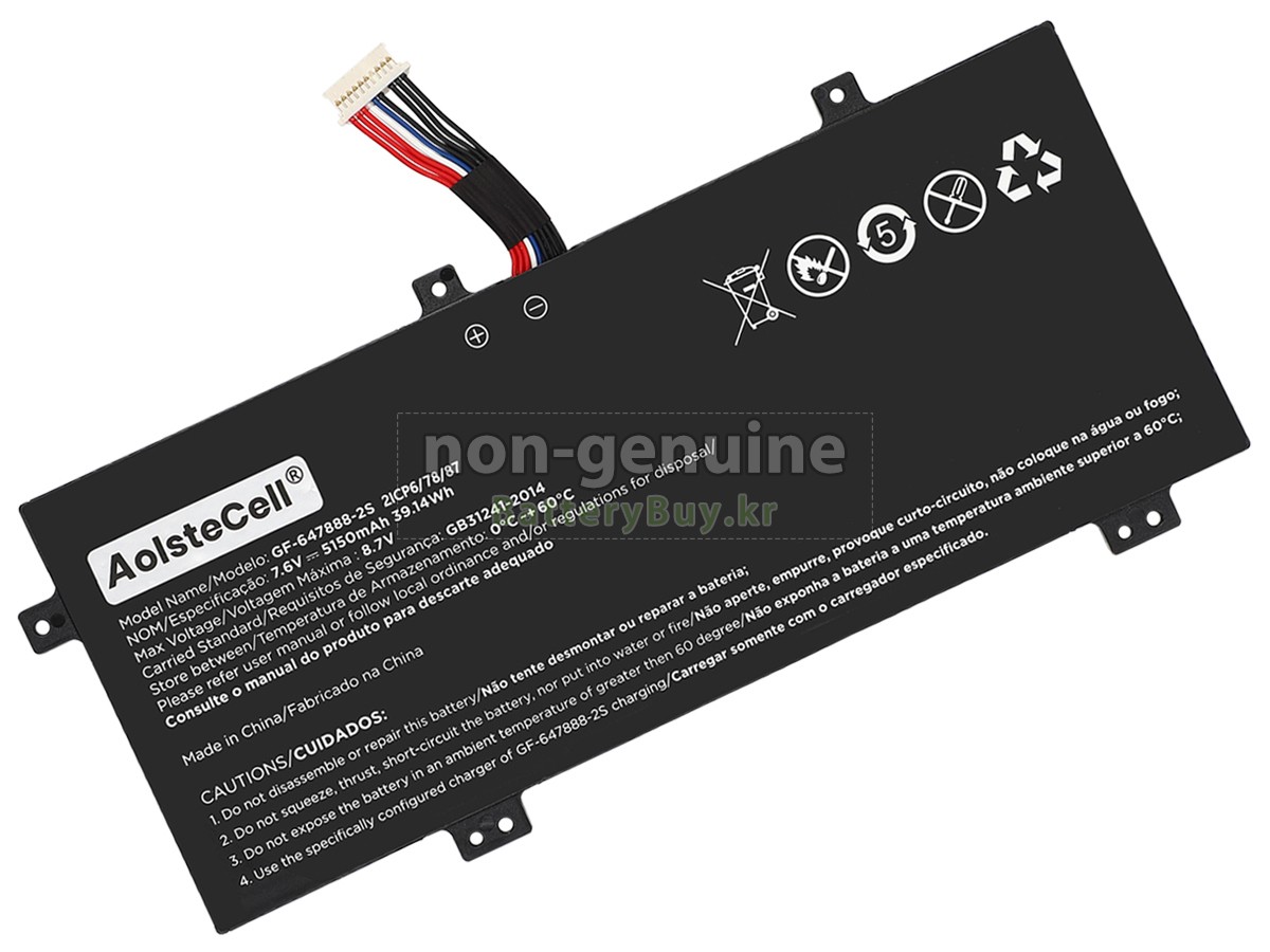 본 새로운 Positivo GF-647888-2S 대체용 배터리는 삼성, 파나소닉과 LG 등 오리지날 공장의 고품질 리튬이온셀을 적용하였고, 배터리의 케이스는 내용성 ABS플라스틱을 사용한 제품입니다. BatteryBuy.kr는 제품 안전성에 대해 요구가 엄격한 바 해당 Positivo GF-647888-2S 배터리 제품은 전부KC, CE, UL, ROHS, ISO 9001/9002 등 일련의 안전인증을 통과하여 국제표준에 부합되며 오리지날사의 규격과 100%로 호환가능하며 오리지널 GF-647888-2S 배터리와 완전 매칭 심지어 초과 가능한 성능을 자랑하고 있습니다. 해당 Positivo GF-647888-2S 배터리의 충/방전 주기는 600회좌우인 바 최적의 배터리 라이프를 선사하고 있습니다.