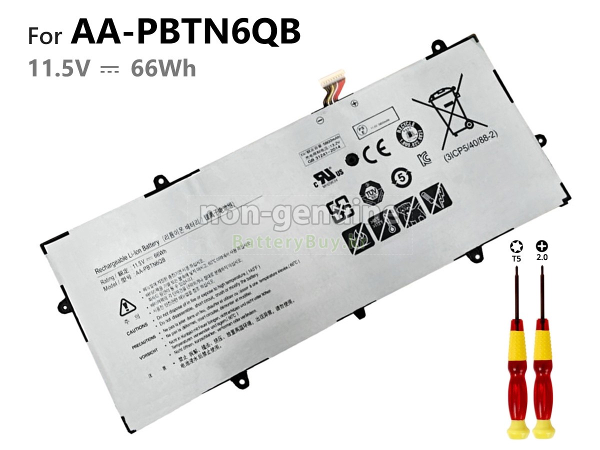 본 새로운 Samsung AA-PBTN6QB 대체용 배터리는 삼성, 파나소닉과 LG 등 오리지날 공장의 고품질 리튬이온셀을 적용하였고, 배터리의 케이스는 내용성 ABS플라스틱을 사용한 제품입니다. BatteryBuy.kr는 제품 안전성에 대해 요구가 엄격한 바 해당 Samsung AA-PBTN6QB 배터리 제품은 전부KC, CE, UL, ROHS, ISO 9001/9002 등 일련의 안전인증을 통과하여 국제표준에 부합되며 오리지날사의 규격과 100%로 호환가능하며 오리지널 AA-PBTN6QB 배터리와 완전 매칭 심지어 초과 가능한 성능을 자랑하고 있습니다. 해당 Samsung AA-PBTN6QB 배터리의 충/방전 주기는 600회좌우인 바 최적의 배터리 라이프를 선사하고 있습니다.