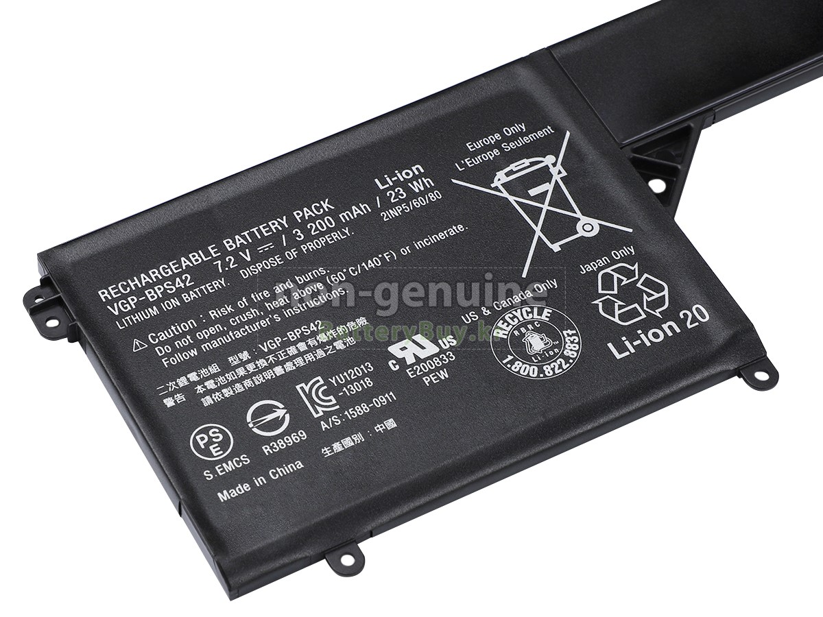본 새로운 Sony VAIO FIT 11A 대체용 배터리는 삼성, 파나소닉과 LG 등 오리지날 공장의 고품질 리튬이온셀을 적용하였고, 배터리의 케이스는 내용성 ABS플라스틱을 사용한 제품입니다. BatteryBuy.kr는 제품 안전성에 대해 요구가 엄격한 바 해당 Sony VAIO FIT 11A 배터리 제품은 전부KC, CE, UL, ROHS, ISO 9001/9002 등 일련의 안전인증을 통과하여 국제표준에 부합되며 오리지날사의 규격과 100%로 호환가능하며 오리지널 VAIO FIT 11A 배터리와 완전 매칭 심지어 초과 가능한 성능을 자랑하고 있습니다. 해당 Sony VAIO FIT 11A 배터리의 충/방전 주기는 600회좌우인 바 최적의 배터리 라이프를 선사하고 있습니다.