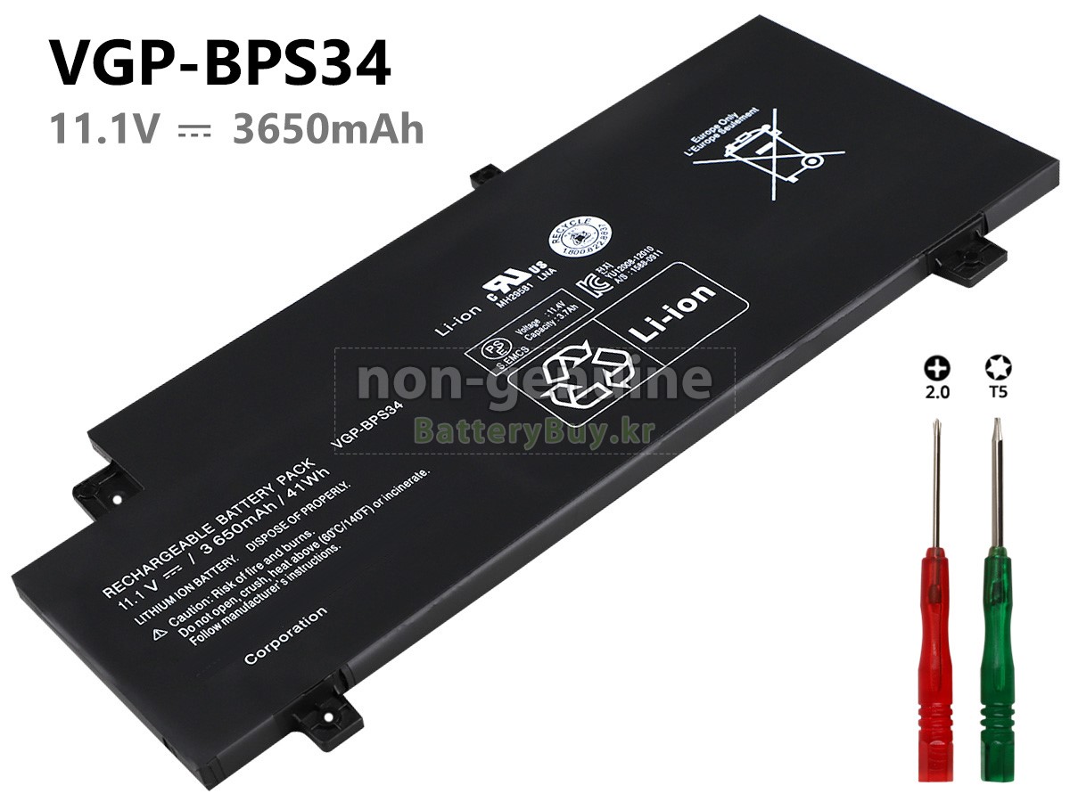 본 새로운 Sony VAIO SVT21216SCB 대체용 배터리는 삼성, 파나소닉과 LG 등 오리지날 공장의 고품질 리튬이온셀을 적용하였고, 배터리의 케이스는 내용성 ABS플라스틱을 사용한 제품입니다. BatteryBuy.kr는 제품 안전성에 대해 요구가 엄격한 바 해당 Sony VAIO SVT21216SCB 배터리 제품은 전부KC, CE, UL, ROHS, ISO 9001/9002 등 일련의 안전인증을 통과하여 국제표준에 부합되며 오리지날사의 규격과 100%로 호환가능하며 오리지널 VAIO SVT21216SCB 배터리와 완전 매칭 심지어 초과 가능한 성능을 자랑하고 있습니다. 해당 Sony VAIO SVT21216SCB 배터리의 충/방전 주기는 600회좌우인 바 최적의 배터리 라이프를 선사하고 있습니다.