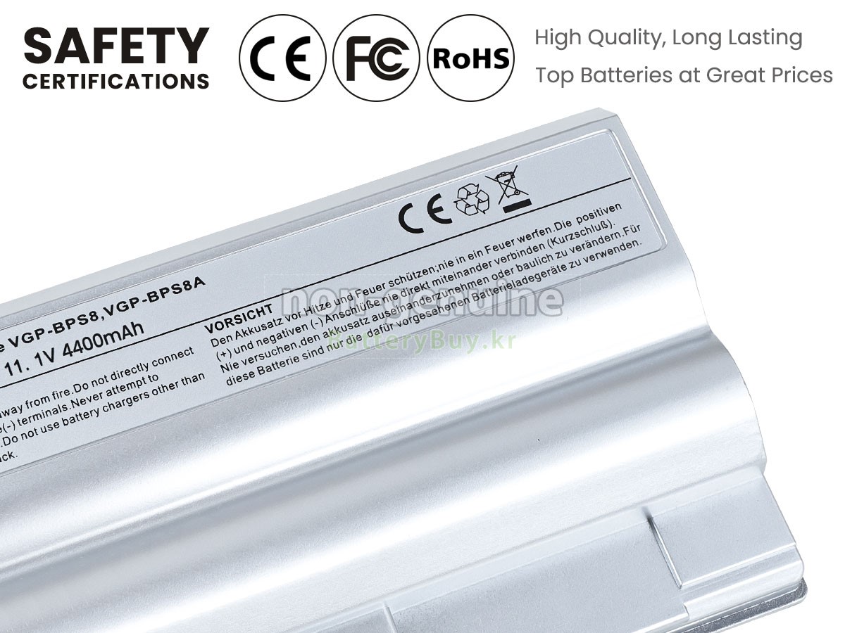 본 새로운 Sony VAIO VGN-FZ31E 대체용 배터리는 삼성, 파나소닉과 LG 등 오리지날 공장의 고품질 리튬이온셀을 적용하였고, 배터리의 케이스는 내용성 ABS플라스틱을 사용한 제품입니다. BatteryBuy.kr는 제품 안전성에 대해 요구가 엄격한 바 해당 Sony VAIO VGN-FZ31E 배터리 제품은 전부KC, CE, UL, ROHS, ISO 9001/9002 등 일련의 안전인증을 통과하여 국제표준에 부합되며 오리지날사의 규격과 100%로 호환가능하며 오리지널 VAIO VGN-FZ31E 배터리와 완전 매칭 심지어 초과 가능한 성능을 자랑하고 있습니다. 해당 Sony VAIO VGN-FZ31E 배터리의 충/방전 주기는 600회좌우인 바 최적의 배터리 라이프를 선사하고 있습니다.