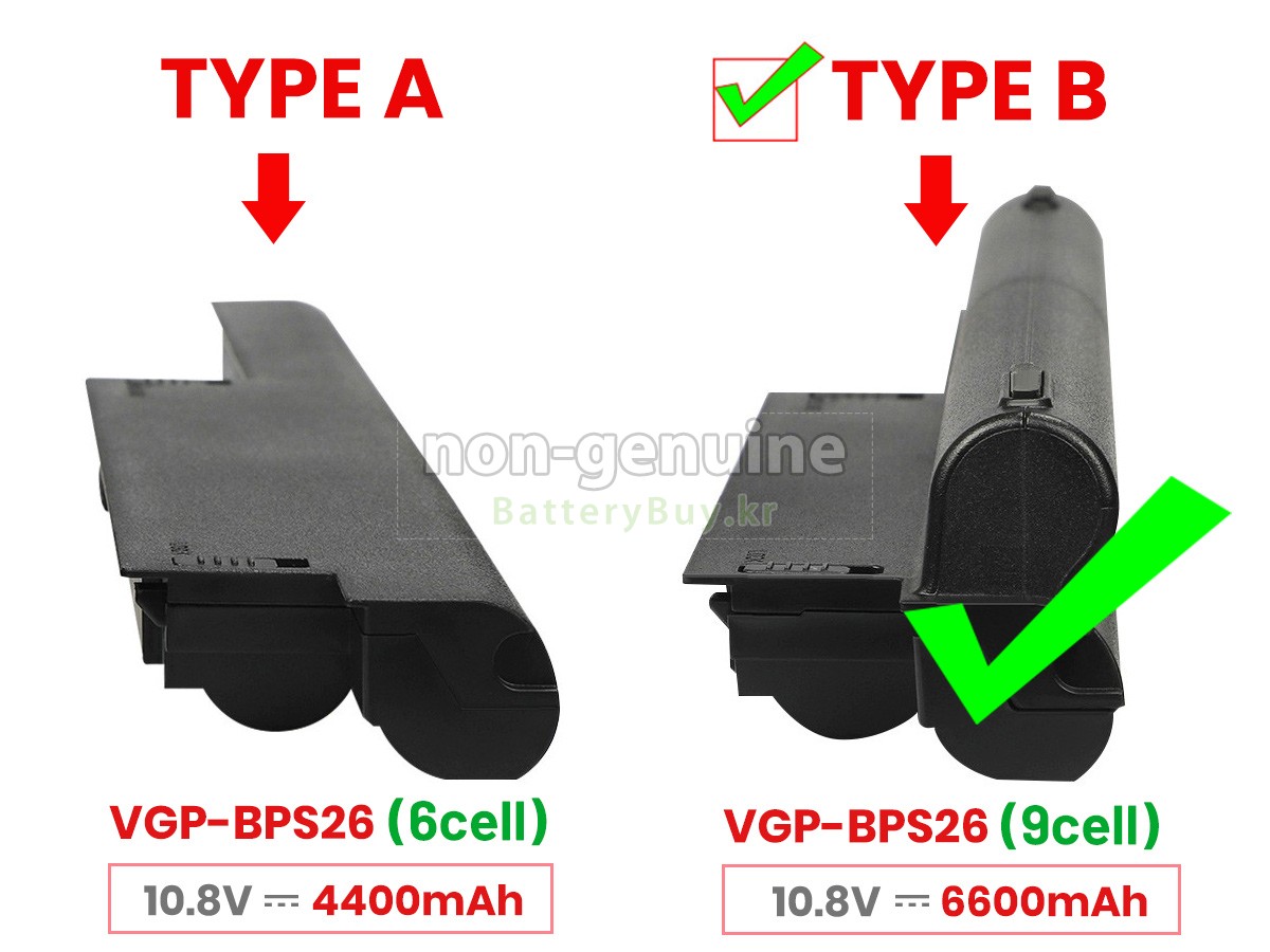 2 고객님의 원 Sony VAIO VPCCB3P1E 배터리의 전압과 용량이 당사 제품과의 일치여부를 확인 후 당사의 확대 이미지에서 인터페이스, 대체적인 모양의 일치 여부를 확인하십시오.