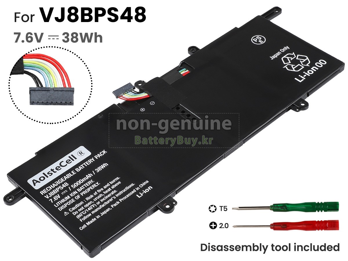 본 새로운 Sony VJS11190111B 대체용 배터리는 삼성, 파나소닉과 LG 등 오리지날 공장의 고품질 리튬이온셀을 적용하였고, 배터리의 케이스는 내용성 ABS플라스틱을 사용한 제품입니다. BatteryBuy.kr는 제품 안전성에 대해 요구가 엄격한 바 해당 Sony VJS11190111B 배터리 제품은 전부KC, CE, UL, ROHS, ISO 9001/9002 등 일련의 안전인증을 통과하여 국제표준에 부합되며 오리지날사의 규격과 100%로 호환가능하며 오리지널 VJS11190111B 배터리와 완전 매칭 심지어 초과 가능한 성능을 자랑하고 있습니다. 해당 Sony VJS11190111B 배터리의 충/방전 주기는 600회좌우인 바 최적의 배터리 라이프를 선사하고 있습니다.