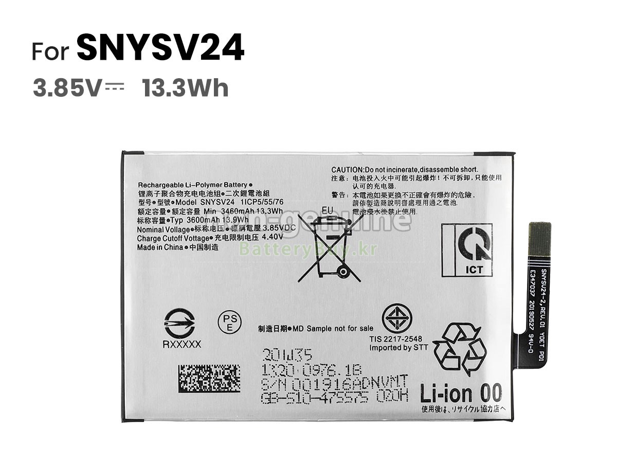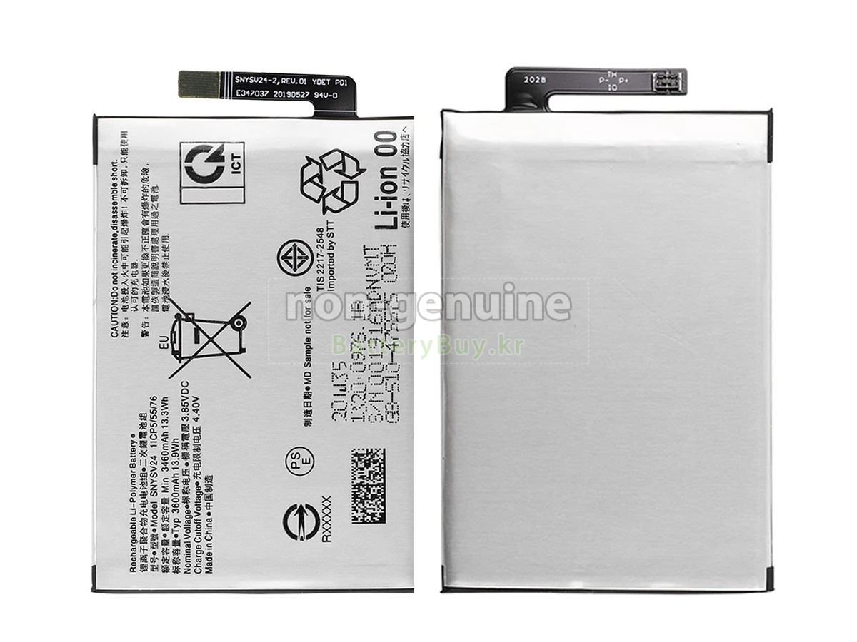 본 새로운 Sony XQ-AU52 대체용 배터리는 삼성, 파나소닉과 LG 등 오리지날 공장의 고품질 리튬이온셀을 적용하였고, 배터리의 케이스는 내용성 ABS플라스틱을 사용한 제품입니다. BatteryBuy.kr는 제품 안전성에 대해 요구가 엄격한 바 해당 Sony XQ-AU52 배터리 제품은 전부KC, CE, UL, ROHS, ISO 9001/9002 등 일련의 안전인증을 통과하여 국제표준에 부합되며 오리지날사의 규격과 100%로 호환가능하며 오리지널 XQ-AU52 배터리와 완전 매칭 심지어 초과 가능한 성능을 자랑하고 있습니다. 해당 Sony XQ-AU52 배터리의 충/방전 주기는 600회좌우인 바 최적의 배터리 라이프를 선사하고 있습니다.