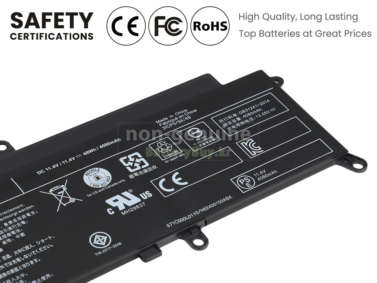 본 새로운 Toshiba Portege X30-E-133 대체용 배터리는 삼성, 파나소닉과 LG 등 오리지날 공장의 고품질 리튬이온셀을 적용하였고, 배터리의 케이스는 내용성 ABS플라스틱을 사용한 제품입니다. BatteryBuy.kr는 제품 안전성에 대해 요구가 엄격한 바 해당 Toshiba Portege X30-E-133 배터리 제품은 전부KC, CE, UL, ROHS, ISO 9001/9002 등 일련의 안전인증을 통과하여 국제표준에 부합되며 오리지날사의 규격과 100%로 호환가능하며 오리지널 Portege X30-E-133 배터리와 완전 매칭 심지어 초과 가능한 성능을 자랑하고 있습니다. 해당 Toshiba Portege X30-E-133 배터리의 충/방전 주기는 600회좌우인 바 최적의 배터리 라이프를 선사하고 있습니다.