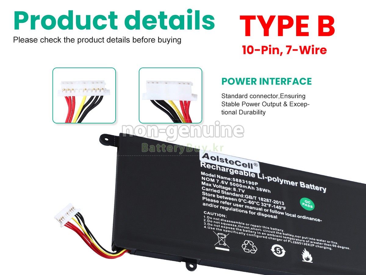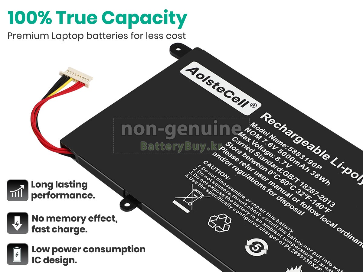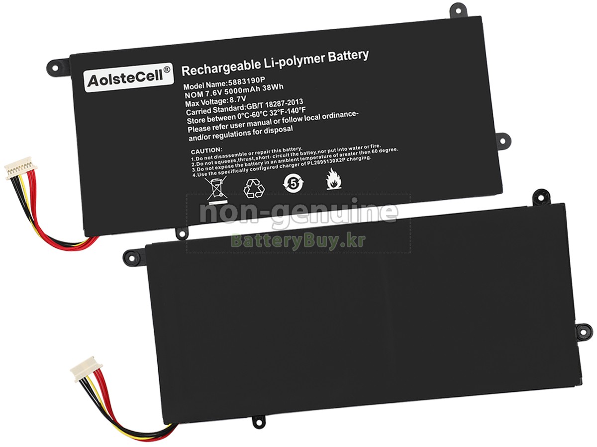본 새로운 Vastking 5883190P 대체용 배터리는 삼성, 파나소닉과 LG 등 오리지날 공장의 고품질 리튬이온셀을 적용하였고, 배터리의 케이스는 내용성 ABS플라스틱을 사용한 제품입니다. BatteryBuy.kr는 제품 안전성에 대해 요구가 엄격한 바 해당 Vastking 5883190P 배터리 제품은 전부KC, CE, UL, ROHS, ISO 9001/9002 등 일련의 안전인증을 통과하여 국제표준에 부합되며 오리지날사의 규격과 100%로 호환가능하며 오리지널 5883190P 배터리와 완전 매칭 심지어 초과 가능한 성능을 자랑하고 있습니다. 해당 Vastking 5883190P 배터리의 충/방전 주기는 600회좌우인 바 최적의 배터리 라이프를 선사하고 있습니다.