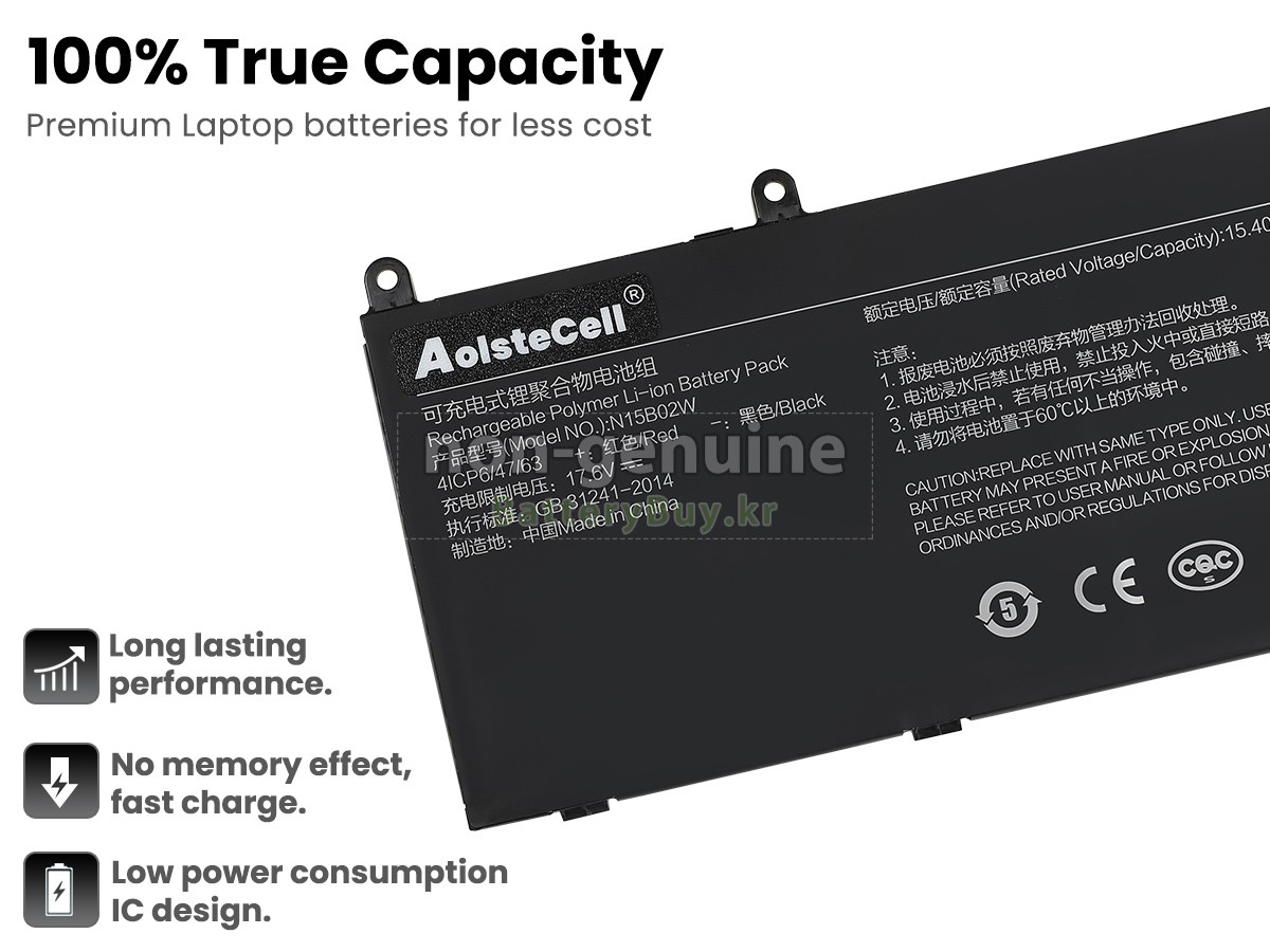 본 새로운 XiaoMi N15B02W(4ICP6/47/63) 대체용 배터리는 삼성, 파나소닉과 LG 등 오리지날 공장의 고품질 리튬이온셀을 적용하였고, 배터리의 케이스는 내용성 ABS플라스틱을 사용한 제품입니다. BatteryBuy.kr는 제품 안전성에 대해 요구가 엄격한 바 해당 XiaoMi N15B02W(4ICP6/47/63) 배터리 제품은 전부KC, CE, UL, ROHS, ISO 9001/9002 등 일련의 안전인증을 통과하여 국제표준에 부합되며 오리지날사의 규격과 100%로 호환가능하며 오리지널 N15B02W(4ICP6/47/63) 배터리와 완전 매칭 심지어 초과 가능한 성능을 자랑하고 있습니다. 해당 XiaoMi N15B02W(4ICP6/47/63) 배터리의 충/방전 주기는 600회좌우인 바 최적의 배터리 라이프를 선사하고 있습니다.